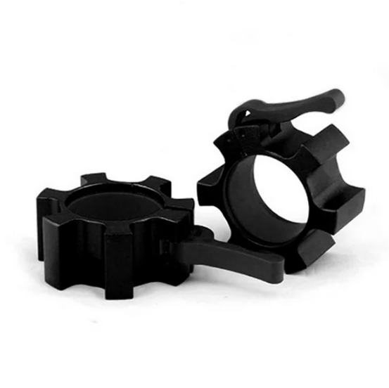 Se utilizan en barras olímpicas o estándar para fijar los discos, evitando que se deslicen durante ejercicios de fuerza como press de banca, sentadillas o peso muerto.