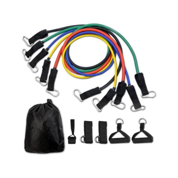 El Set de Ligas de Resistencia 11PCS K es un kit versátil para entrenamientos en casa, gimnasio o al aire libre. Incluye ligas de distintos niveles de resistencia, manerales, correas y accesorios que permiten una gran variedad de ejercicios de fuerza, estiramiento y rehabilitación.